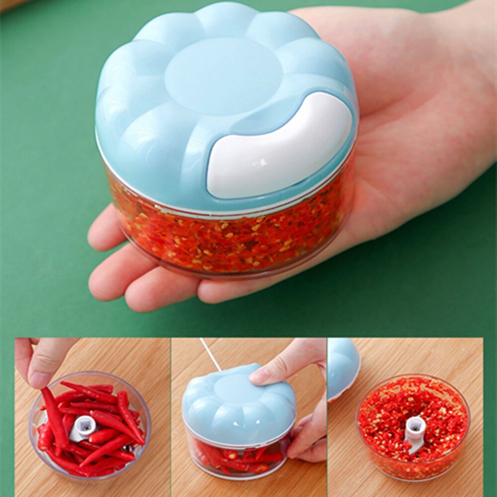 Ele possui lâminas de aço inoxidável reforçadas para o preparo de alimentos como alho, gengibre, pimentão, vegetais, frutas, temperos, carnes e até mesmo papinha para bebês.